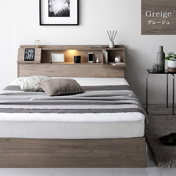 ベッド シングル ポケットコイルマットレス付き ブラック フラップ扉 照明付 収納付 棚付 宮付 コンセント付