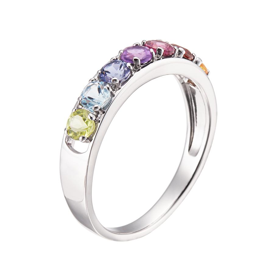 7色の宝石を集めたマルチストーンリング。ホワイトゴールドの上品さもプラスされています。地金素材:K10WG使用宝石:ペリドット・ブルートパーズ・アイオライト・アメシスト(アメ