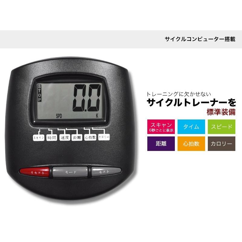 商品情報 自宅で簡単・安心トレーニングダイエット・トレーニング目的に!!ホイール重量15kgのミドルウェイトスピンバイク。 外で自転車に乗ることもなく安心・安全にトレーニングでき、ジムのバイクのようなエクササイズができる室内用のスピンバイク。サドルとハンドルの高さは調節可能で、推奨身長は150cm-180cmまで幅広くご使用いただけます。そして、トレーニングに欠かせないサイクルコンピューターを標準装備しております。 |