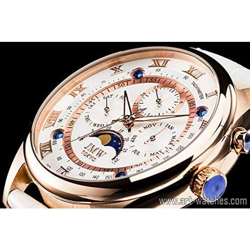JMW TOKYO腕時計 メンズ 上級ムーンフェイズ 日本製ムーブメント 本革ベルト ローマ数字インデックス 100m防水 タキメーター (